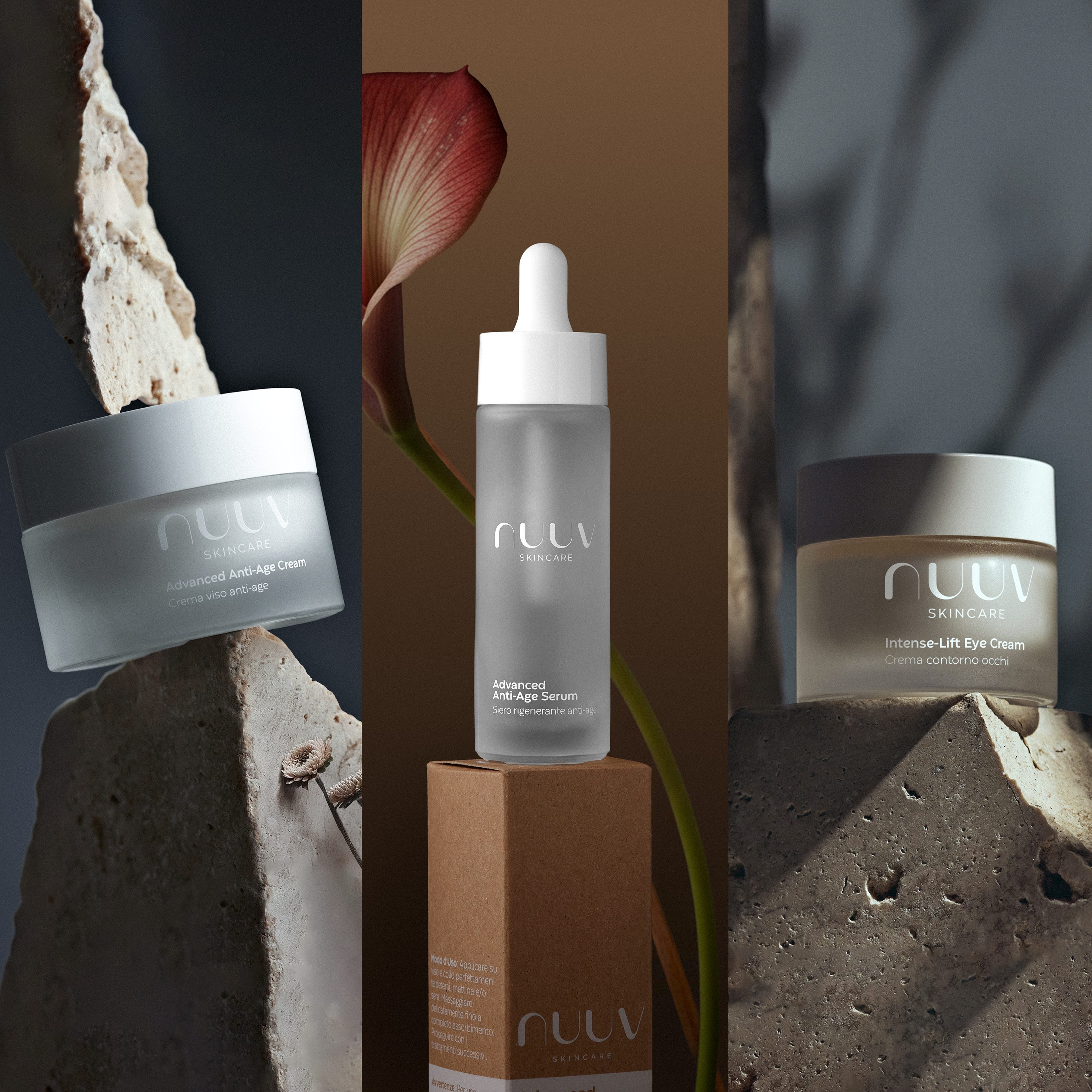 Usati insieme, i tre prodotti creano un trattamento anti-age completo che leviga, rassoda e rigenera la pelle, lasciandola visibilmente più compatta, distesa e luminosa.