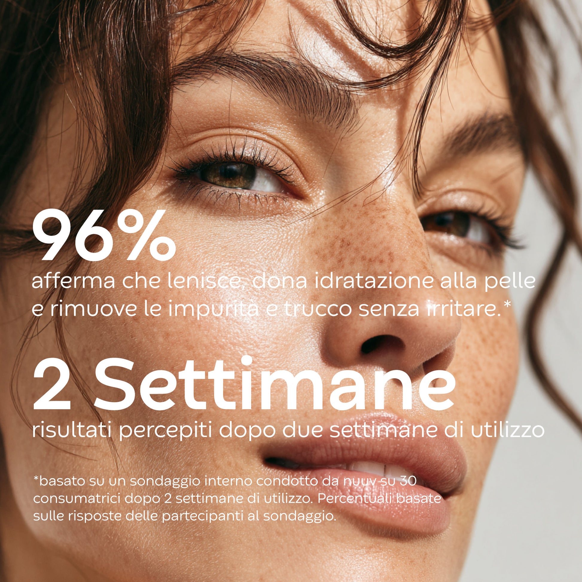 La sua texture lattiginosa e avvolgente si massaggia con facilità e si rimuove con acqua o dischetto, regalando una sensazione immediata di pulizia, freschezza e luminosità.